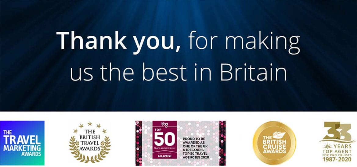 View all cruise dealsWe’re recognised as the best in Britain, not just with countless travel industry awards and by our customers, but by the world’s leading cruise lines too and from the multiple awards that we've won for our service and dedication to providing the best cruise holiday experiences we can.